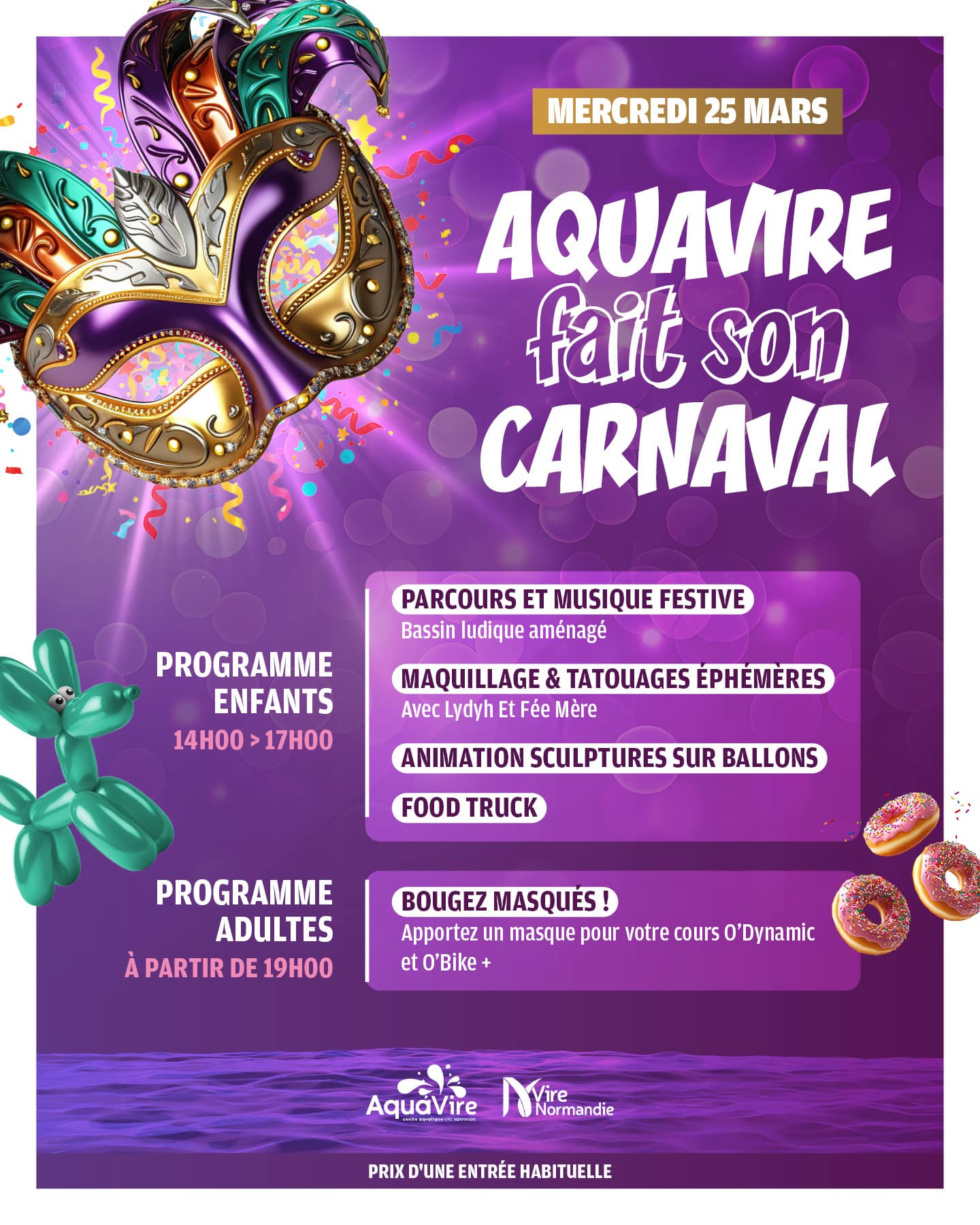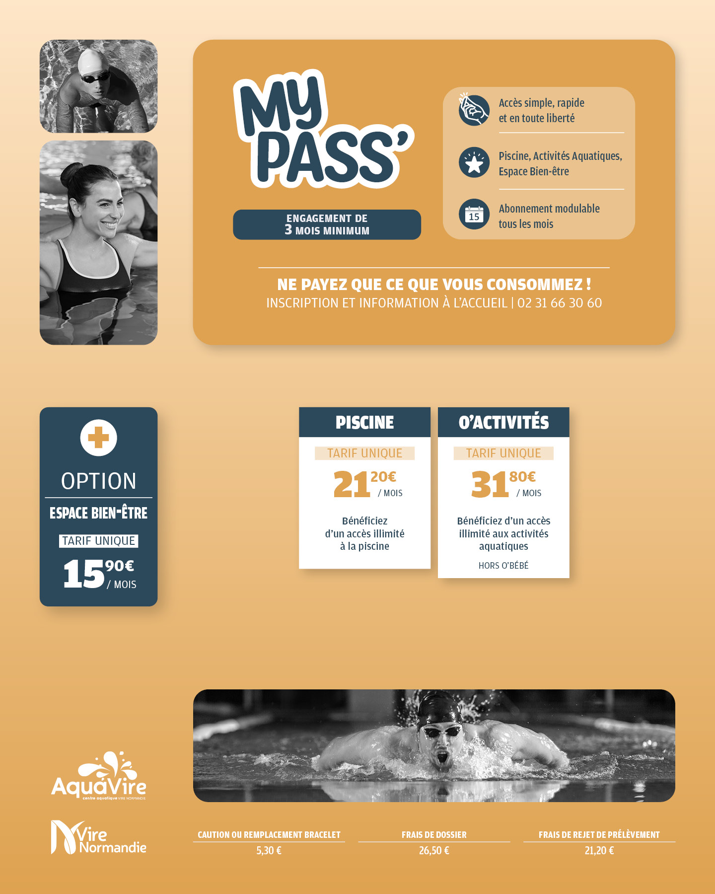 Au cœur des bocages normands, dans une ville riche d’histoire et fière de son patrimoine, le Centre Aquatique Aquavire de la Communauté de Communes de Vire vous accueille toute l’année dans ses espaces Aquatiques et Bien-Être.